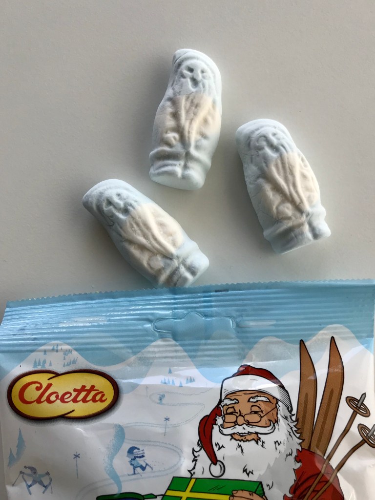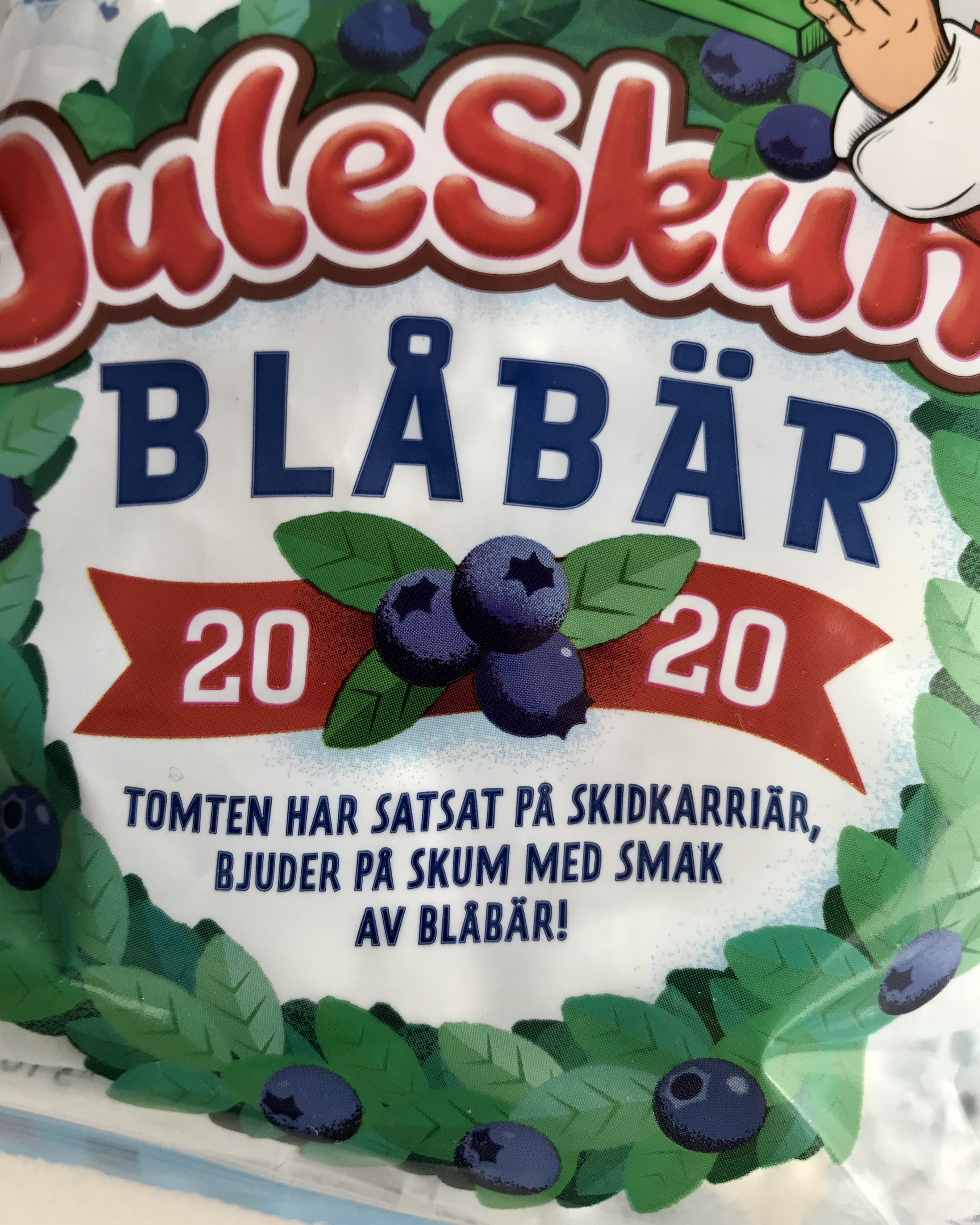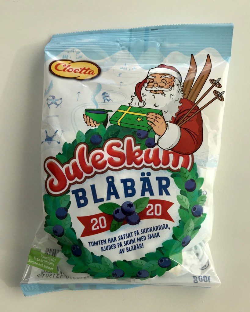 Häromdagen fick jag tag i en påse av Cloettas juleskum 2020 med smak av blåbär!