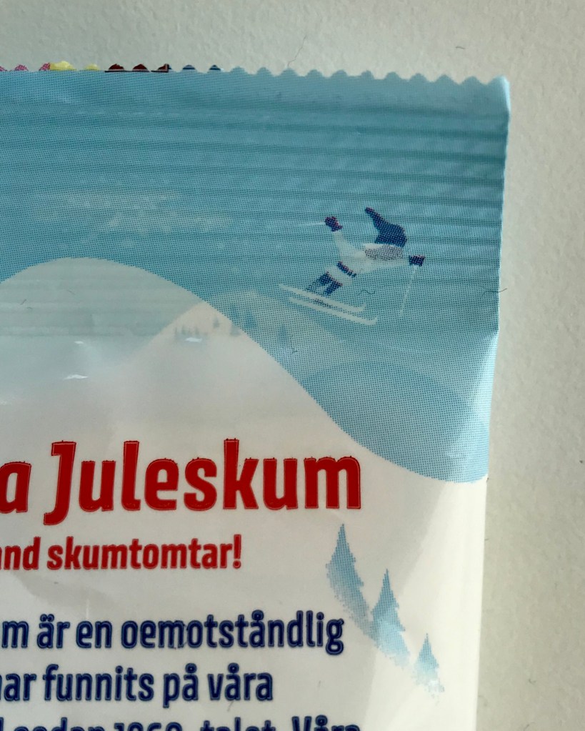 Men nu ska jag inte vara negativ, påsen är fin och jag gillar de små söta skidåkartomtarna som pryder den…