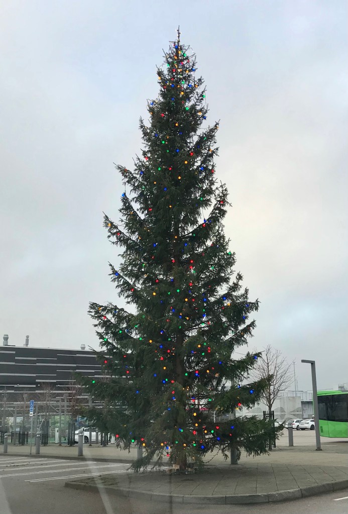 Det är den första julgranen jag ser i år och den var så mäktig! Stor, tät och med kulört belysning… ❤ Jag passade på att spana ordentligt! Julmarknader, nöjesfält och varuhus/köpcentrum där man oftast brukar se såna här granar känns lite off limits nu med de nya restriktionerna.. Men man skulle ju kunna ta och packa in familjen i bilen och åka på en coronasäker granspaningstur..? 🙂