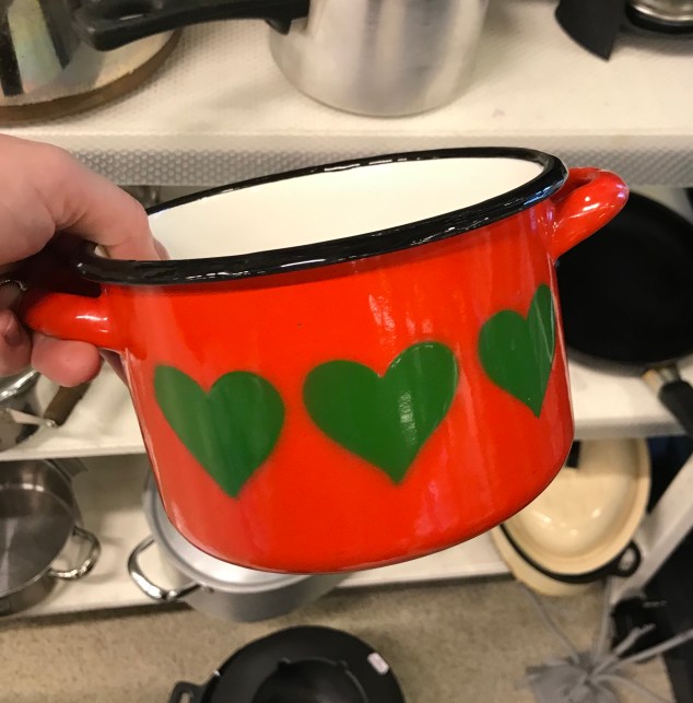 Sen är det dags att smälta stearinet från ljusstumparna! Jag gör det i vattenbad på spisen. Stoppar ner ljusstumparna i en tom konservburk som får stå i en kastrull med sjudande vatten på låg värme tills stearinet smält.