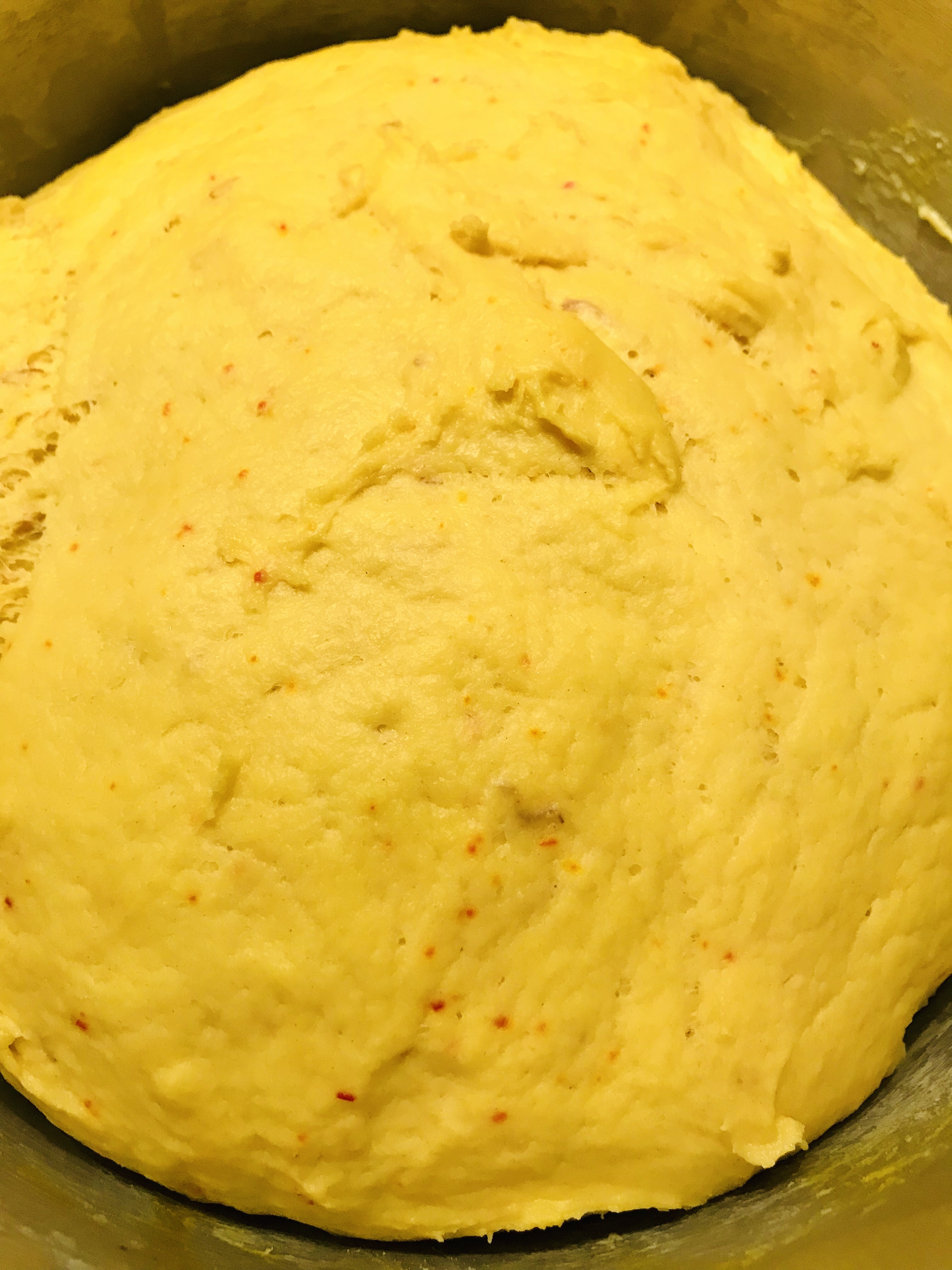 • 1g saffran (jag hade en färdig blandning av 2 pkt saffran/1 msk rom/1 msk socker stående som jag hällde i degen)