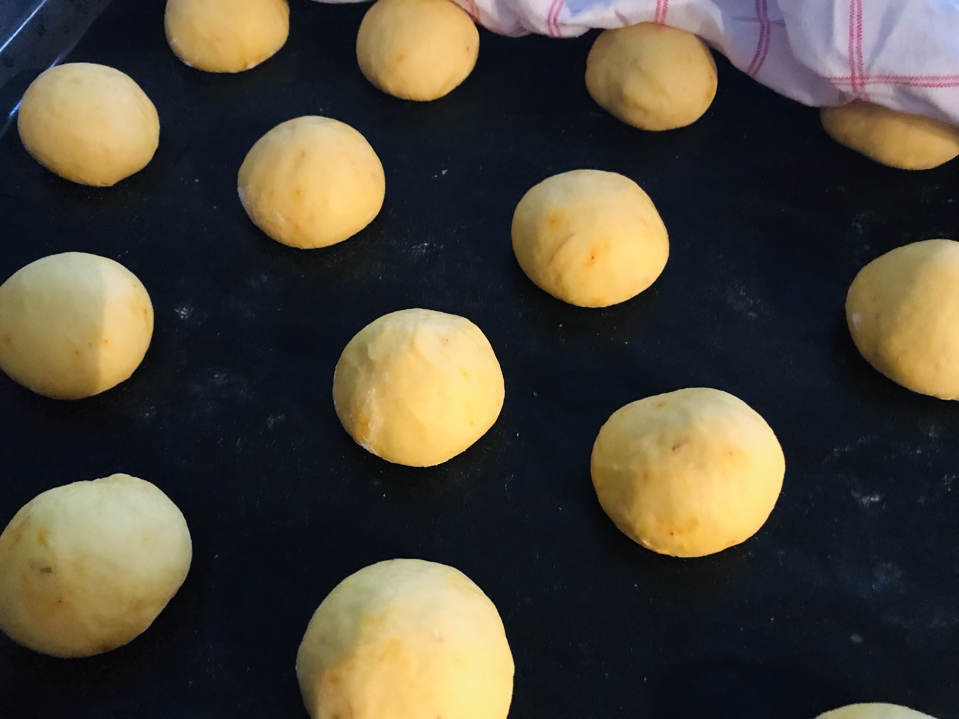 Låt de formade bakverken jäsa en gång till i rumstemperatur under bakduk (mellan 30min -2h beroende på temperatur) och pensla dem med uppvispat ägg innan du gräddar dem i 210-220 grader i 10-15 minuter! Och voilà!Nygräddade fluffiga saffransbullar att sätta tänderna i!