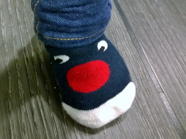 Klart man måste matcha Rudolfhaklappen med Rudolfstrumporna så här i juletid! 🙂