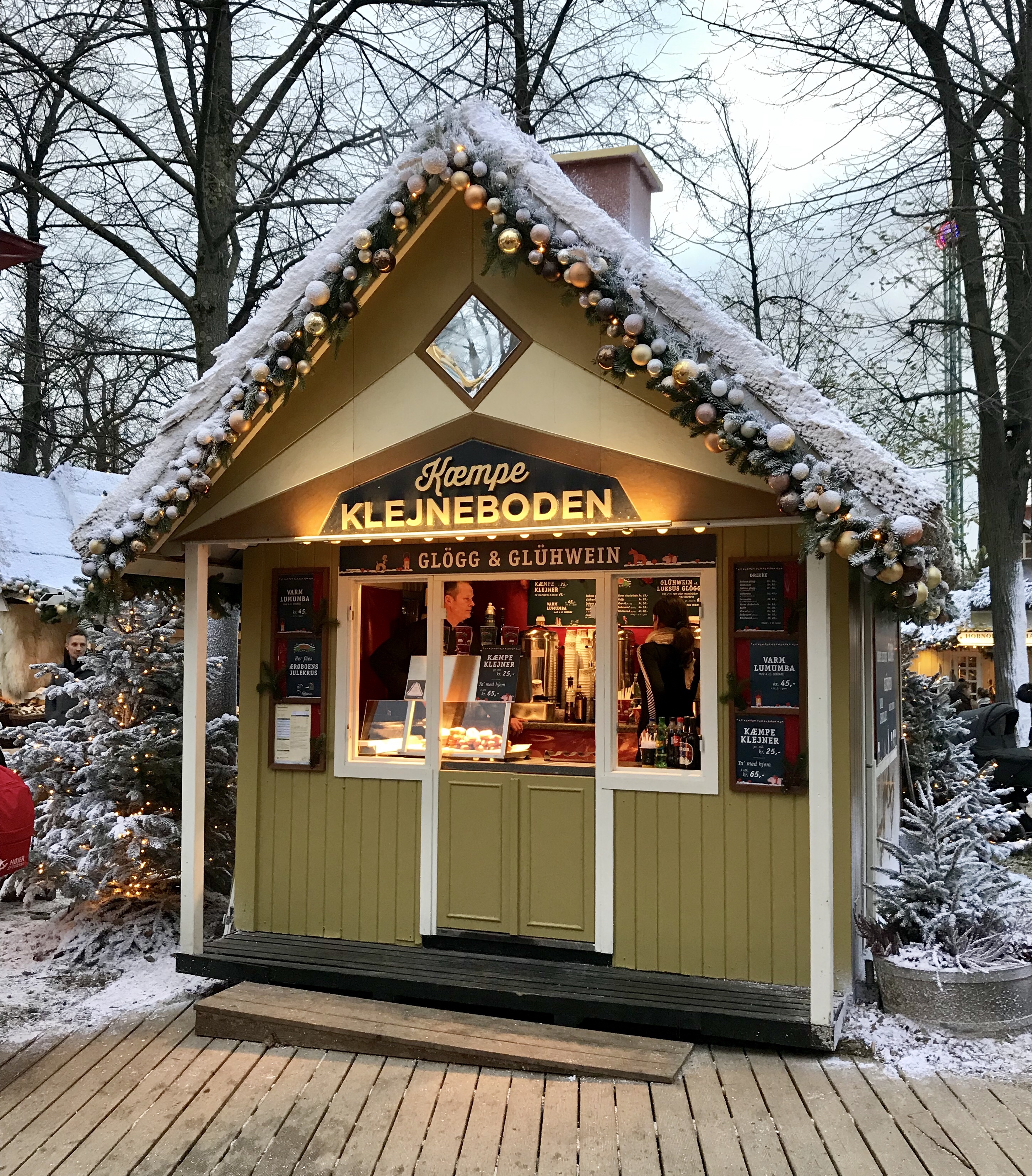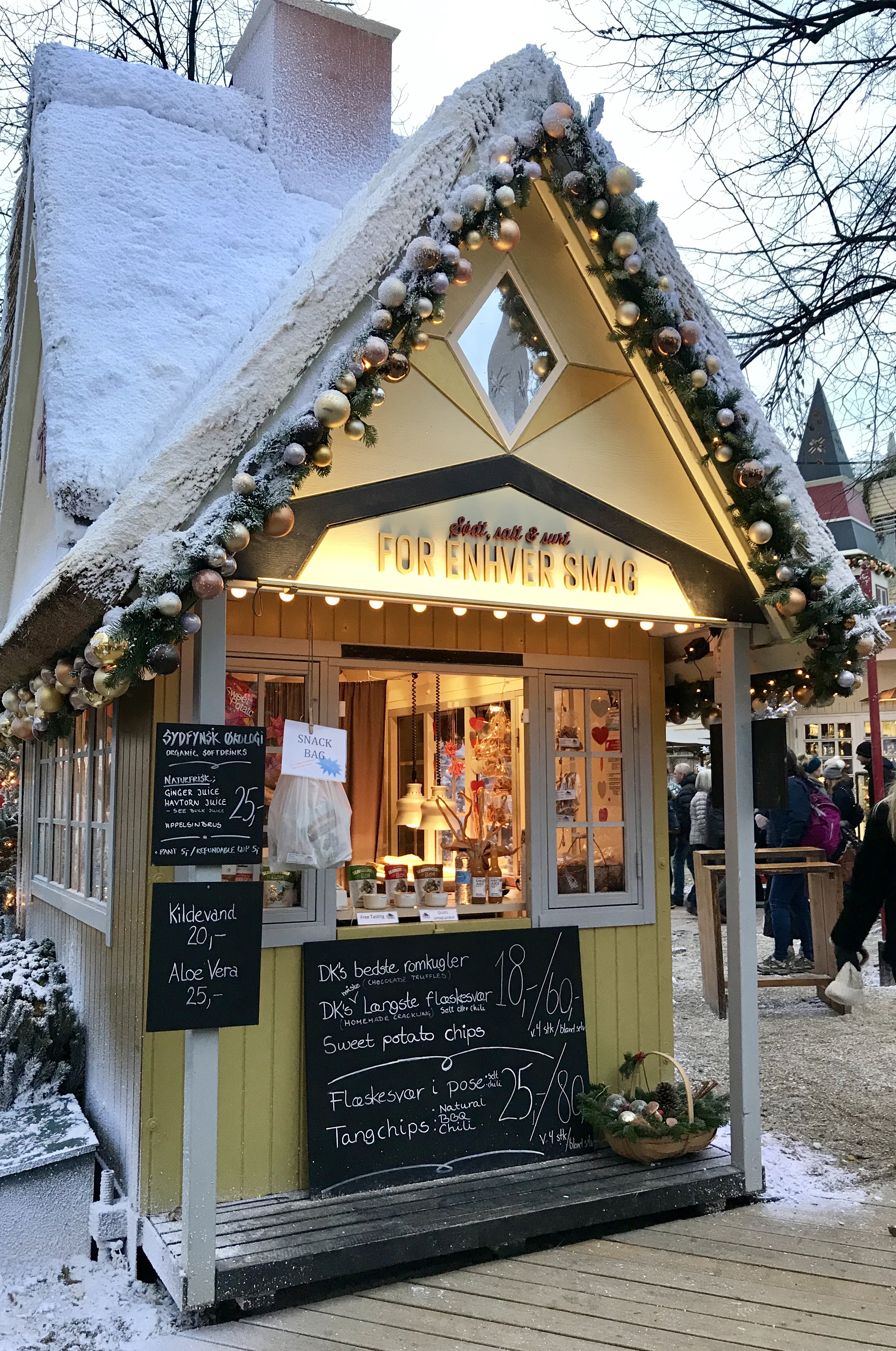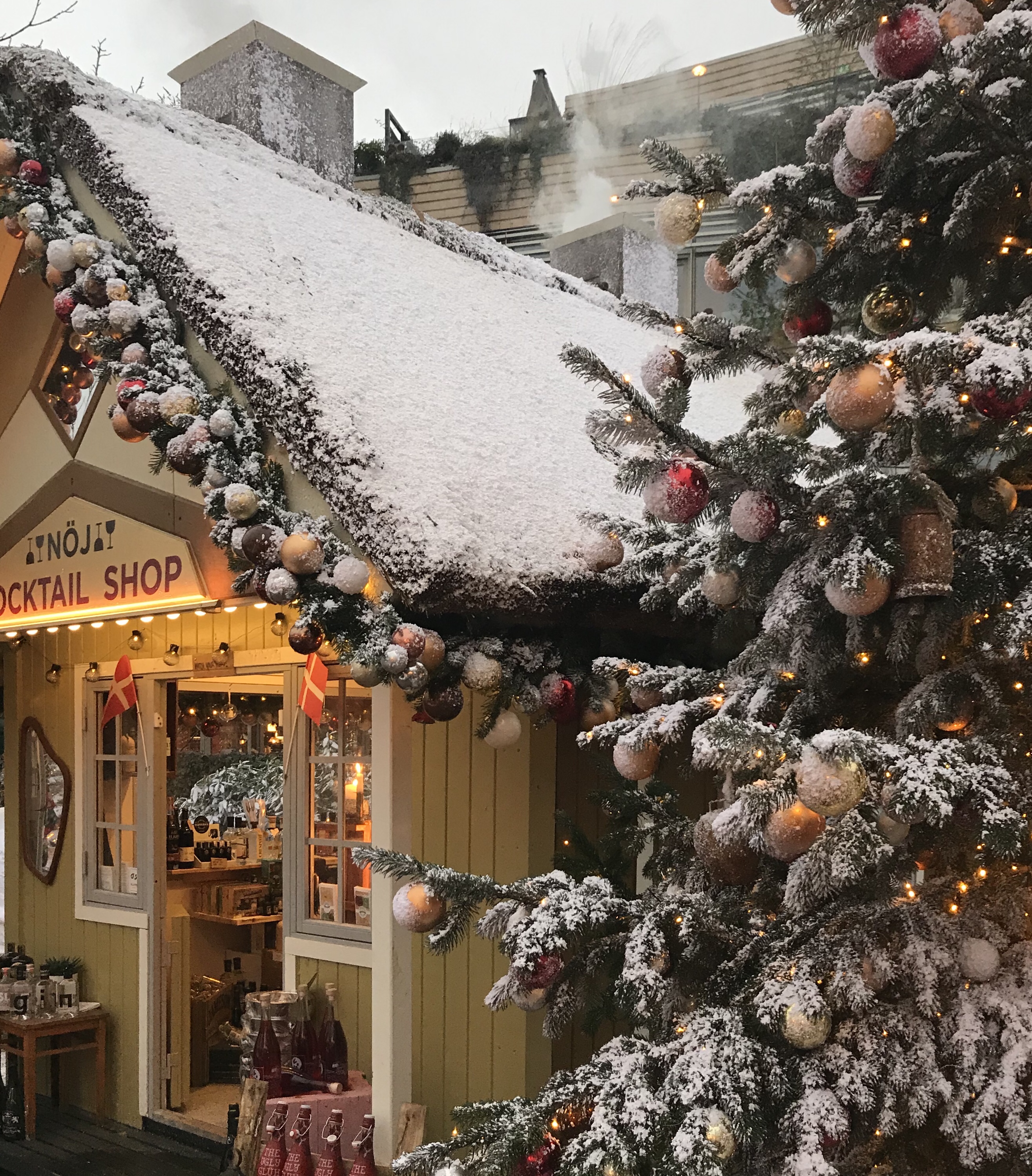 De små bodarna var som vanligt klädda i vinterskrud, tjockt med granris, julkulor & ”snö” på taken och med ett mysigt välkomnande sken! Önskar jag kunde dela med mig av doften också; glögg, brända mandlar & nylagade æbleskiver…