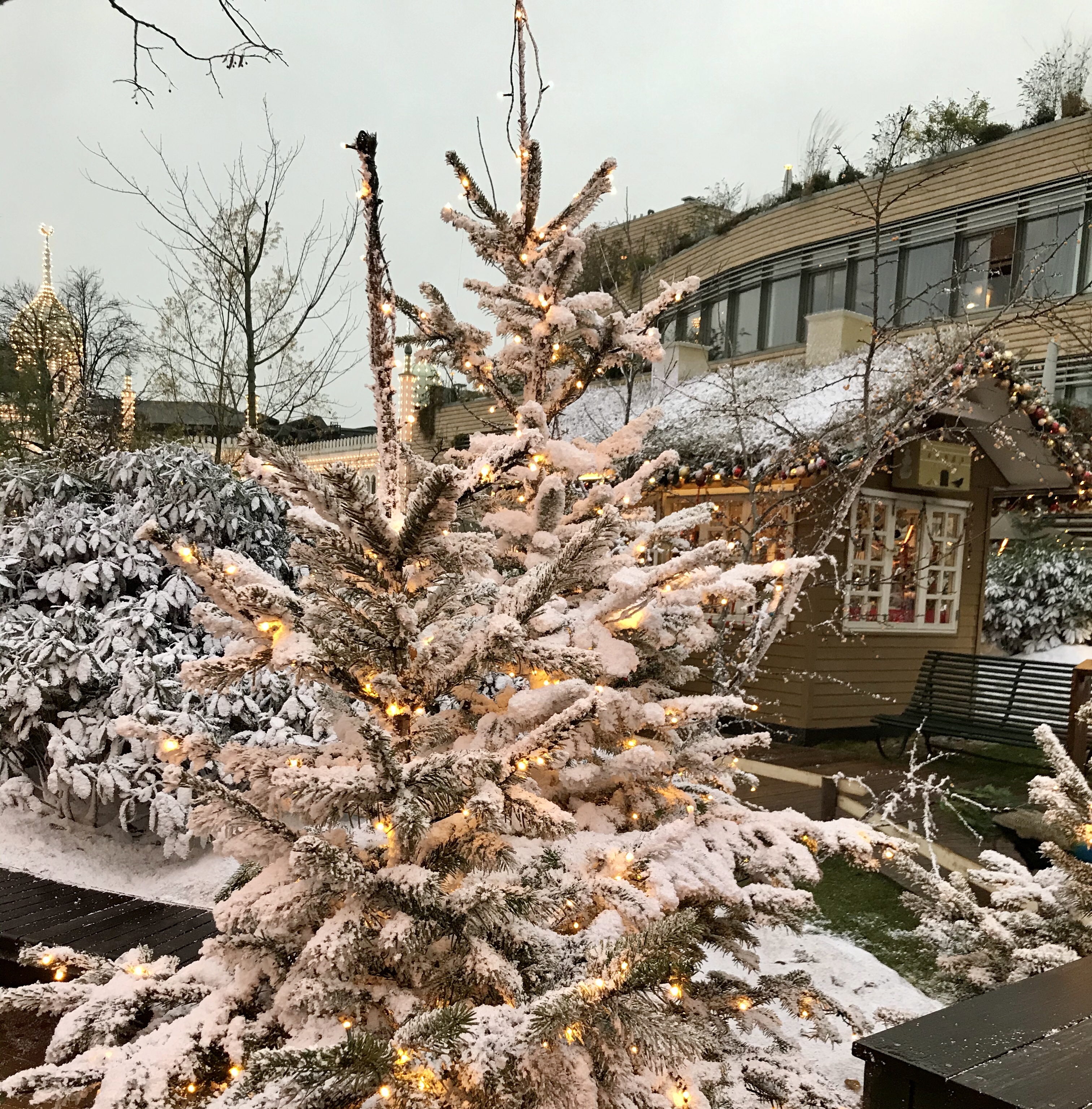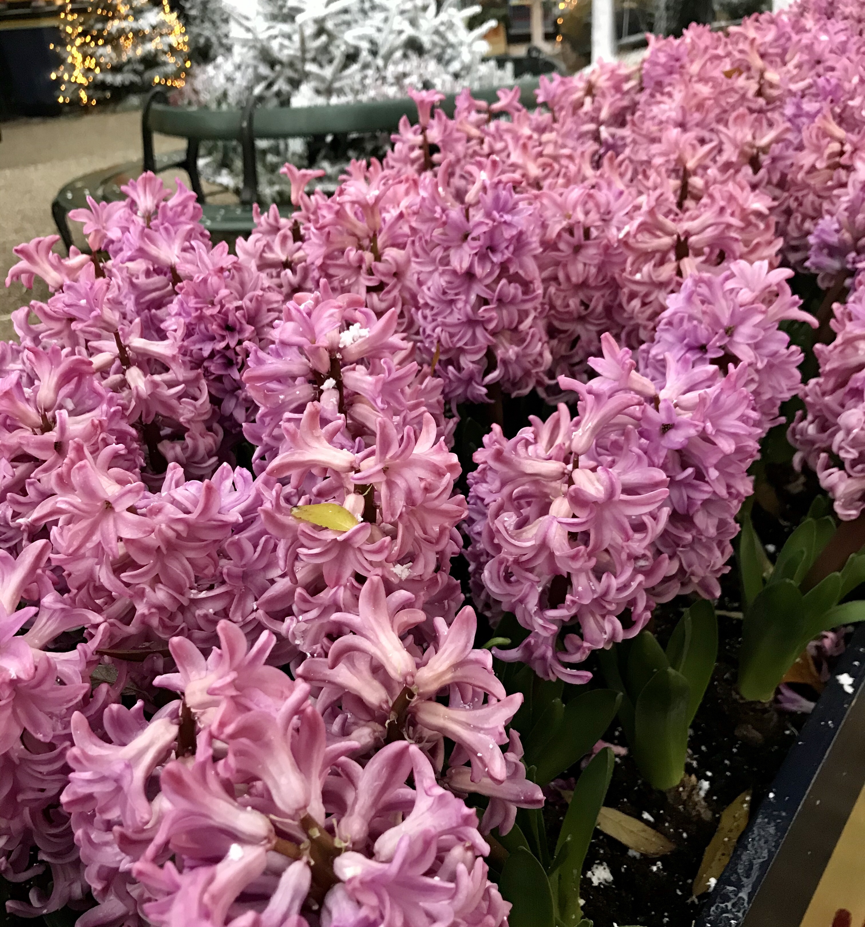 Fusksnö och belysning i all växtlighet och stora hav av blå hyacinter välkomnade oss och alla andra glada & förväntansfulla besökare!