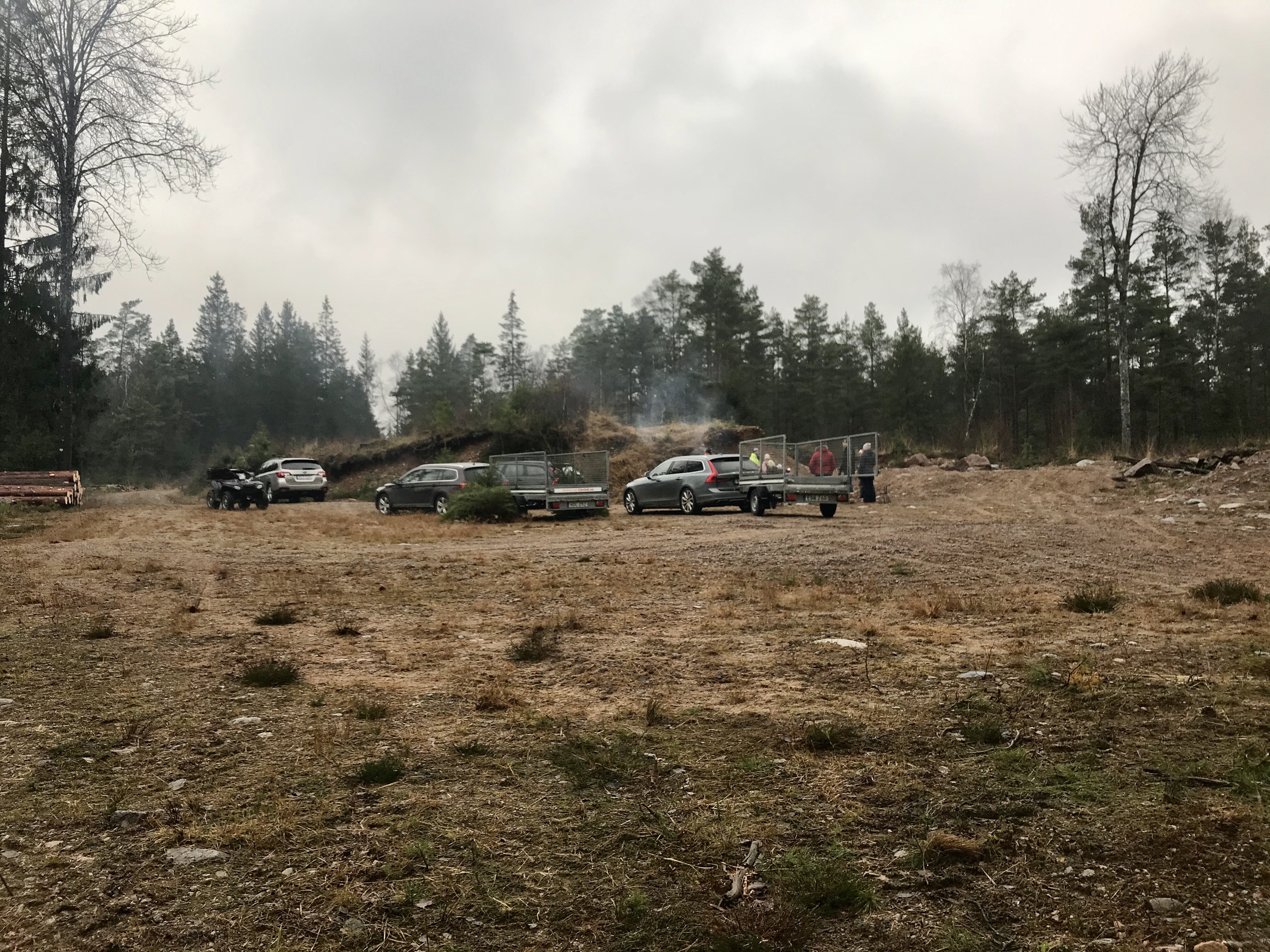 Men att välja gran är inget lätt uppdrag! Vi började med att samla lite granris till trappan och hugga varsin mindre gran till ungarna.