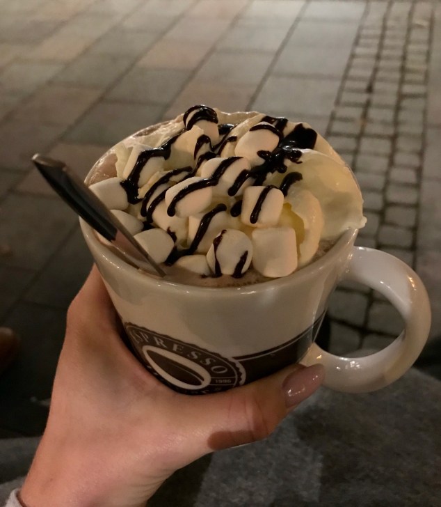 Och till min stora förtjusning avslutades bägge biodejterna med varm choklad extra allt under en filt på en av stadens uteserveringar!