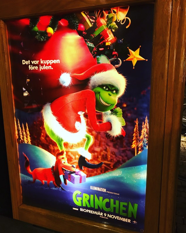 I lördags gick vi i stället på bio hela familjen och såg Grinchen! Storyn är mer eller mindre samma gamla historia som alltid (dock med en ensamstående småbarnsmamma i en av huvudrollerna!) men jag älskar ju hela sagan om Grinchen och har nog sett filmen med Jim Carrey närmre 50 gånger…