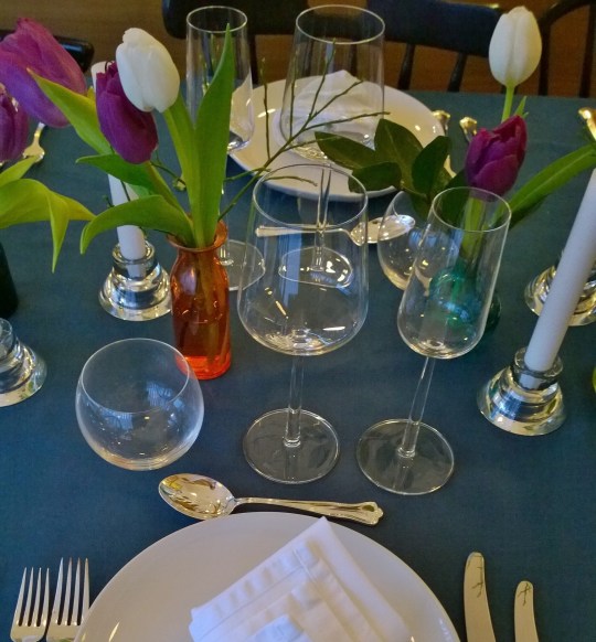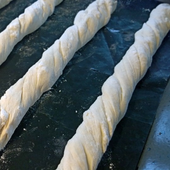Dagen började med brödbak innan frukost. Vi behövde ett gott bröd till förrätten och jag provade ett nytt recept på baguetter som visade sig vara superlyckat (det här, fast utan oliver och valnötter)!