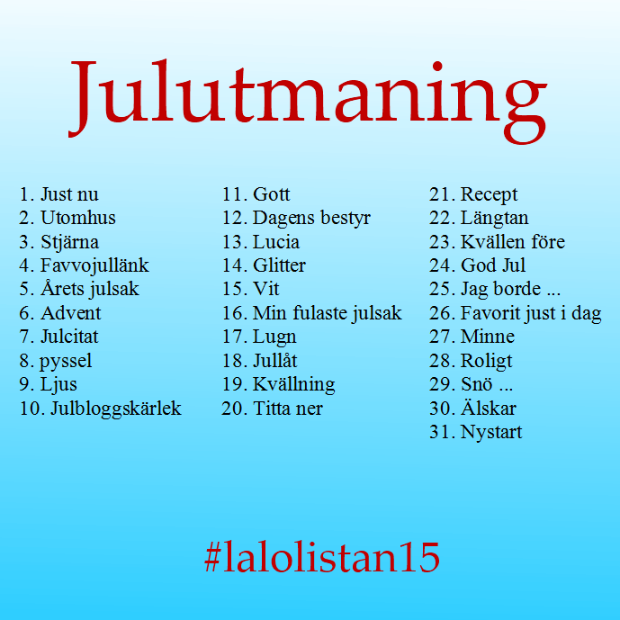 Jul i Laloland gav oss andra en bildutmaning nu i december, lätt att jag hakar på den!